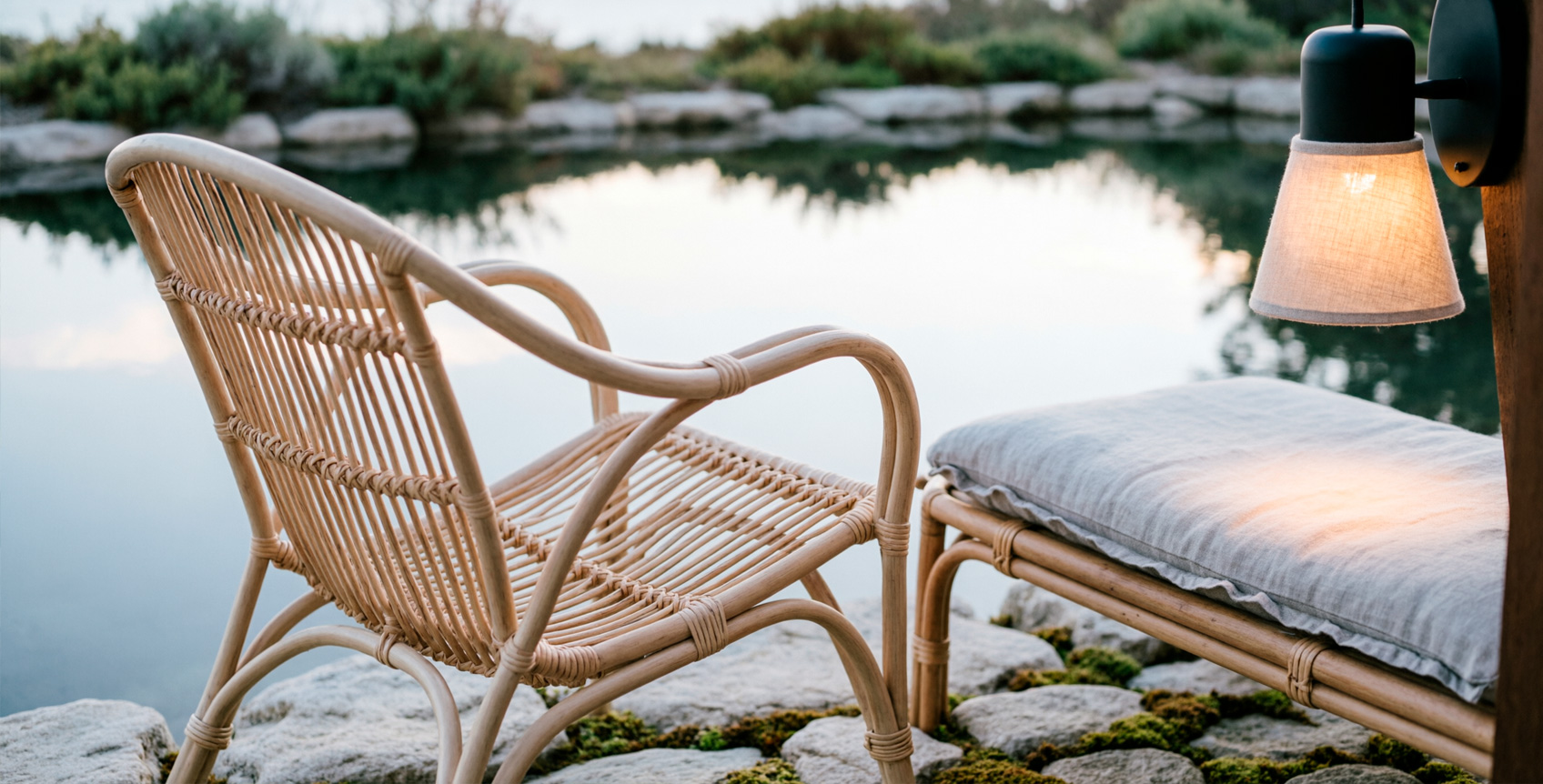 Забудьте о пластиковых лежаках кислотных оттенков. Выбирайте деревянные или ротанговые кресла с тонкими линиями. Лавка у самой воды - лучший друг созерцания. Можно повесить рядом небольшой светильник (тёплый, диммируемый), но не фонарный столб - минимализм прежде всего.Мягкая тропа к воде